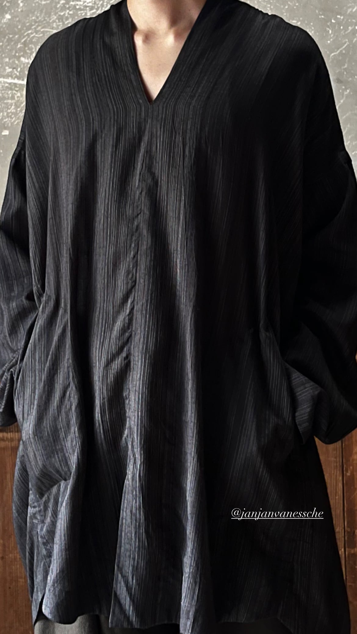 KIMONO COLLAR LOOSE FIT TUNIC WITH KNIFE PLEAT IN THE BACK.
