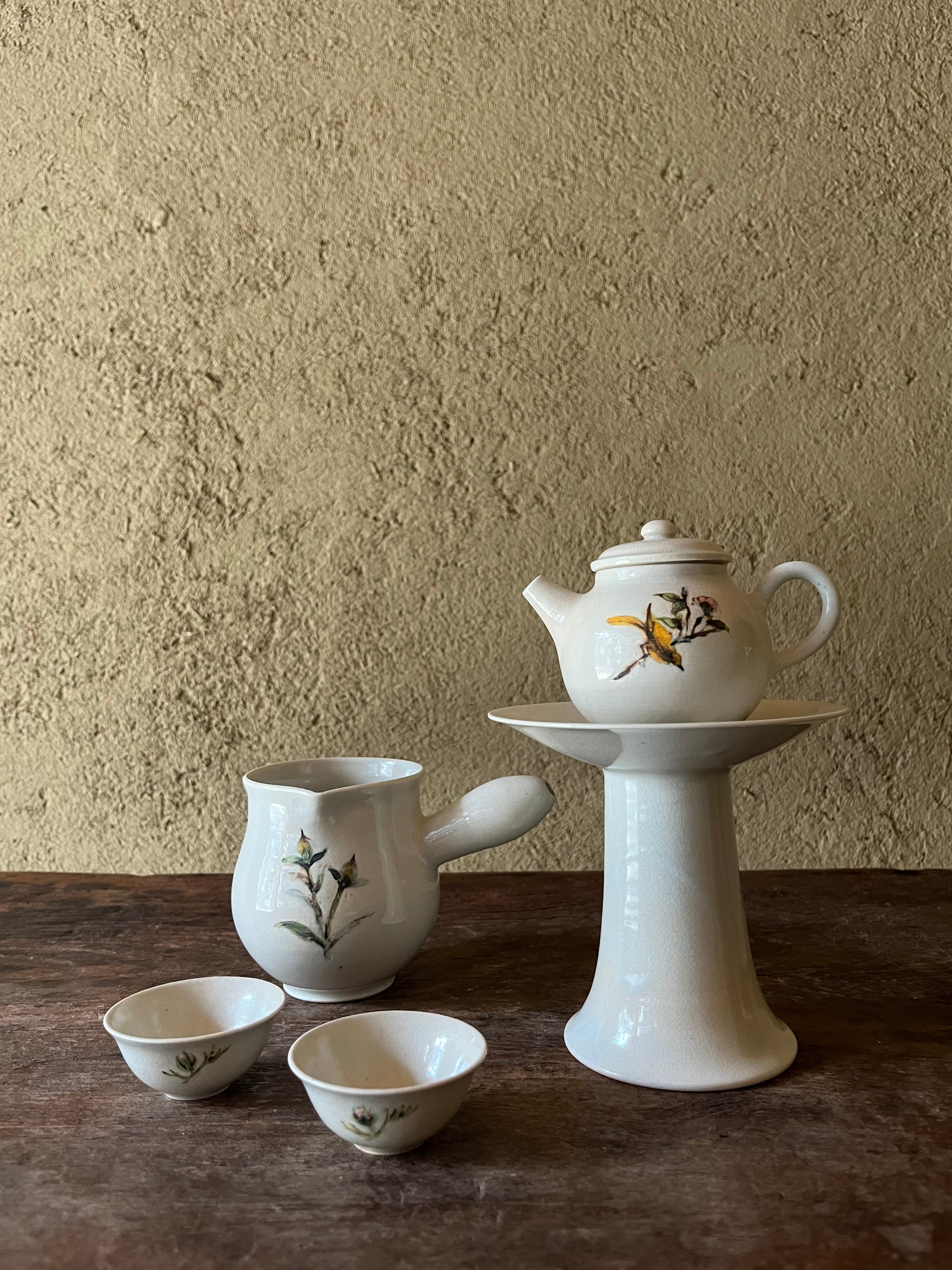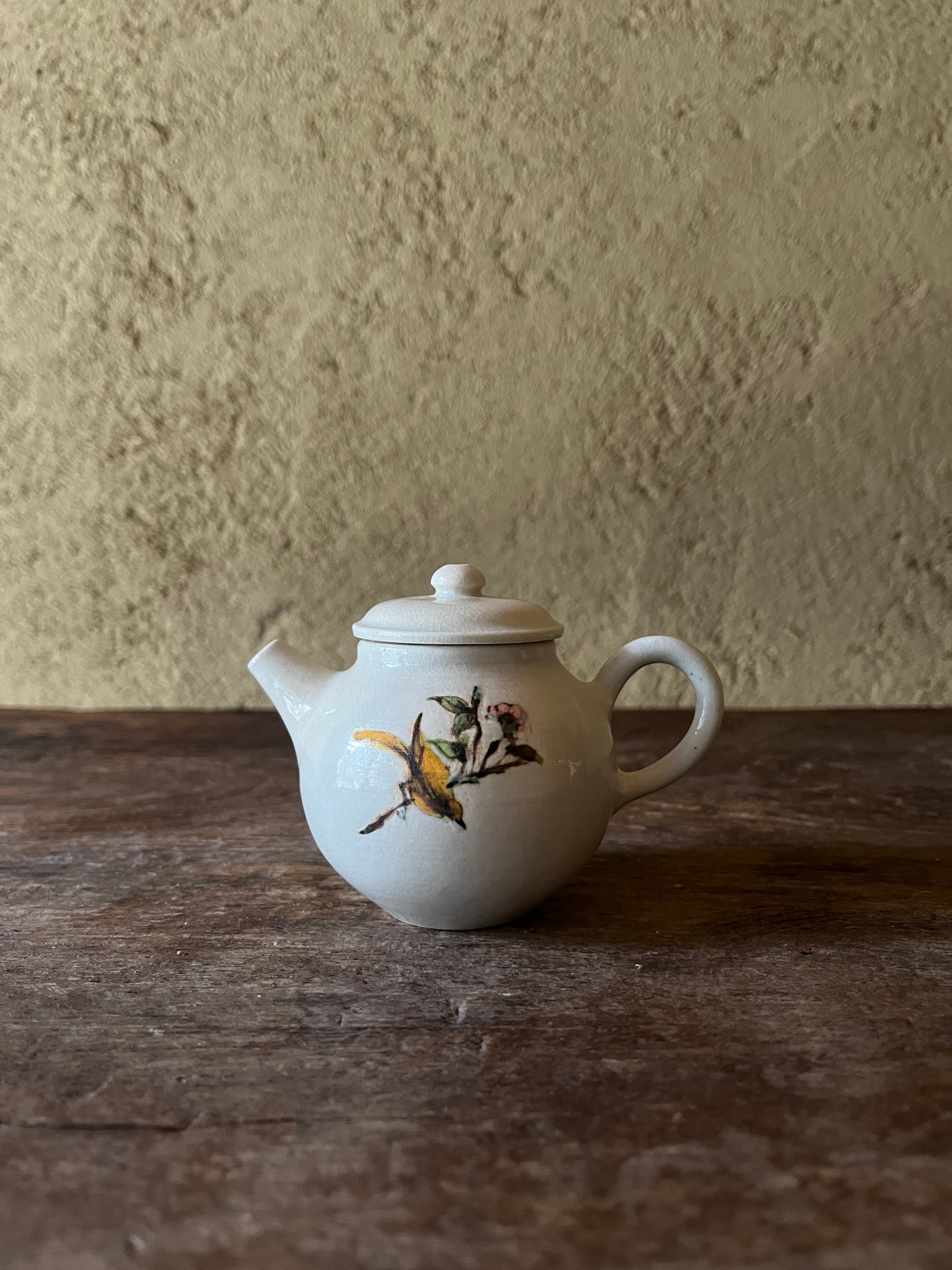 白磁 茶壺 花鳥(黄鳥)