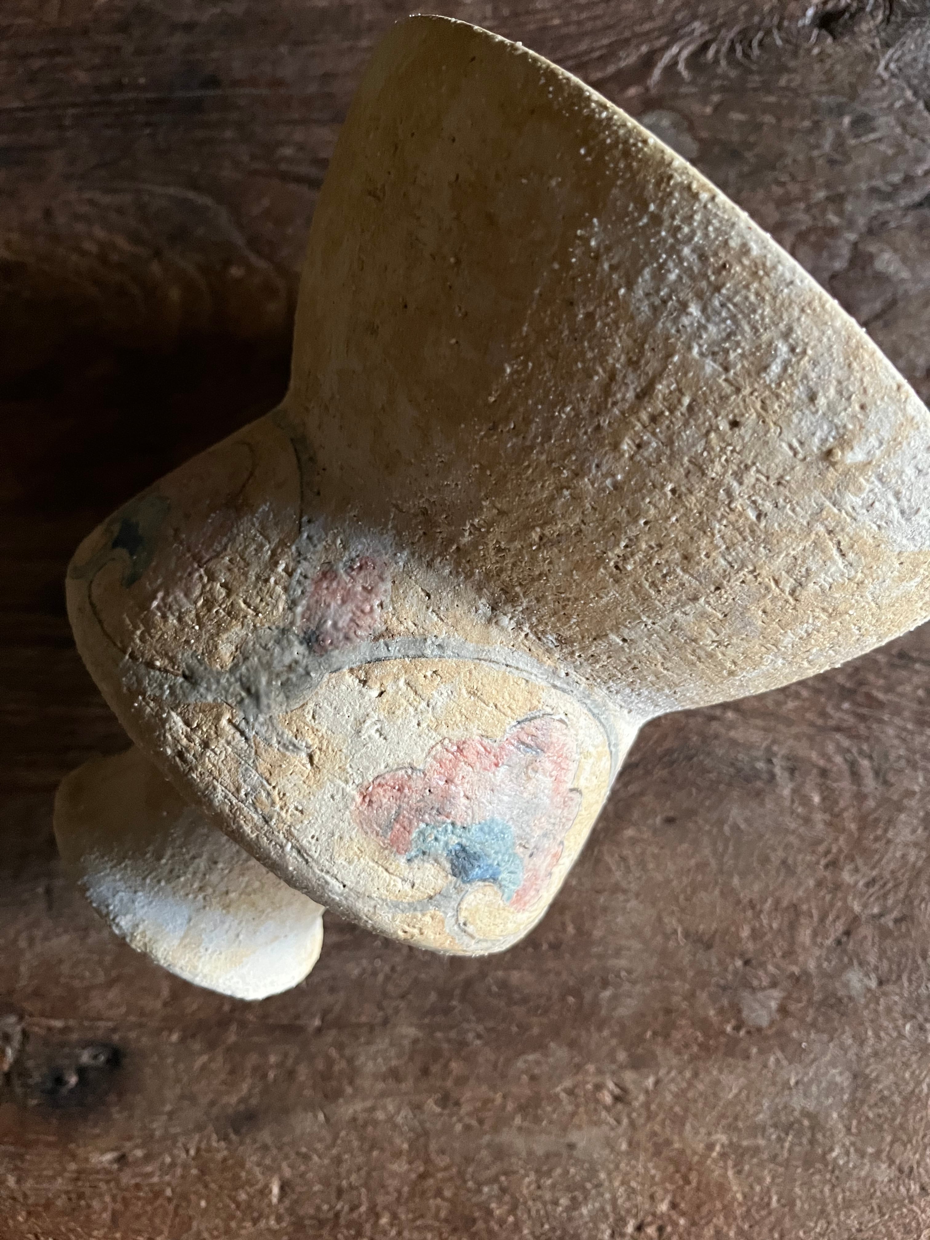 まるで歴史的な石窟の壁に描かれているような絵付けが魅力的な花器は存在感抜群です。