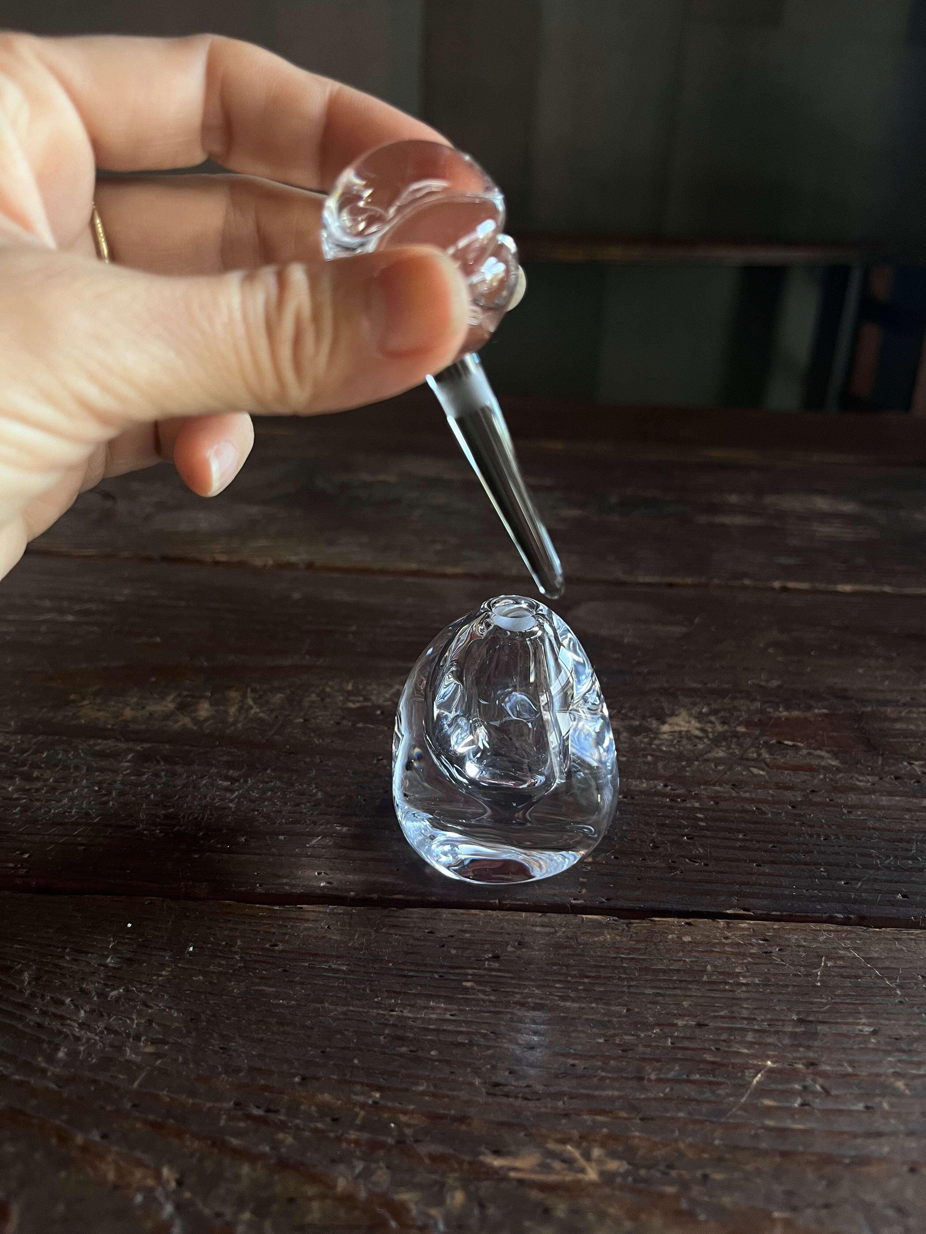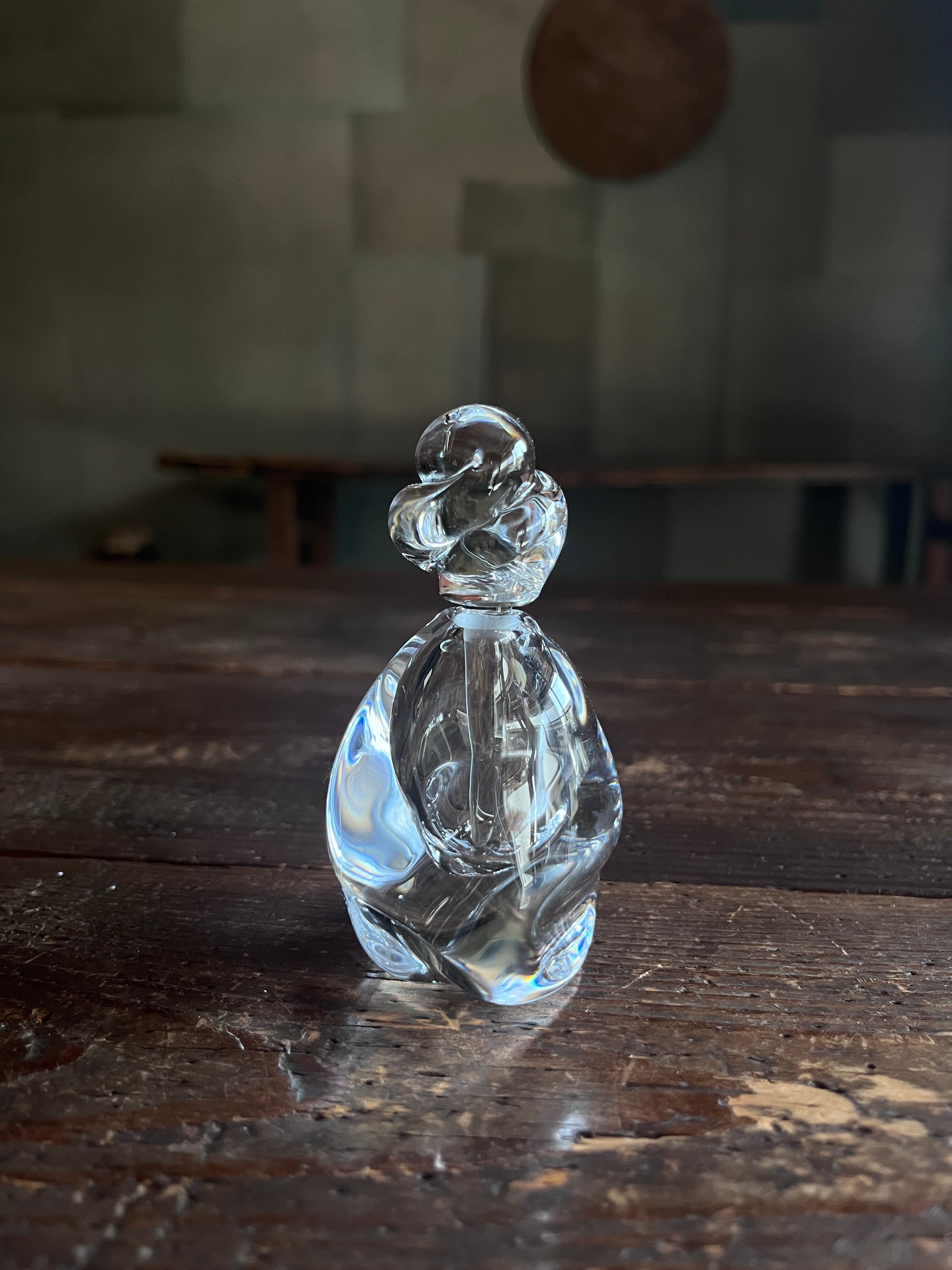 まるで水の水滴が跳ねたような、躍動感溢れる美しい香水瓶です。