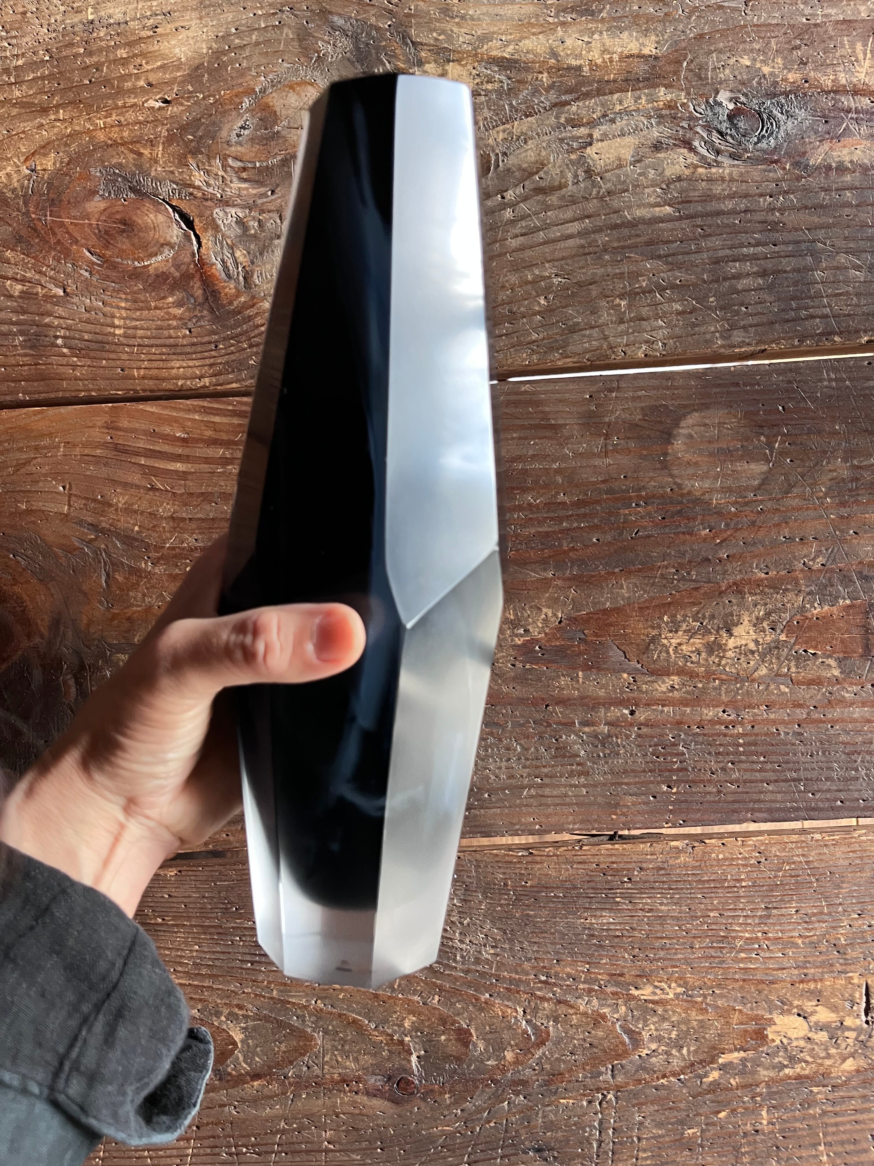黒にも近いガラスに白い筋が印象的です。